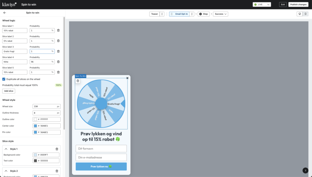 En spændende ny mulighed fra Klaviyo er muligheden for at lave lykkehjul direkte gennem deres pop up tool.