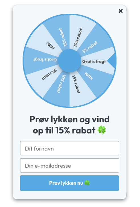 Typisk ser vi dobbelt så høj tilmeldingsrate ved lykkehjul sammenlignet med en almindelig pop up, selvom den potentielle gevinst er den samme.