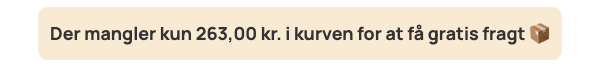 Lige nu står den til at fragtgrænsen er 500 kr., og at der først bliver vist “Du mangler kun”, hvis de har over 300 kr. i kurven. Disse værdier, samt teksterne kan du redigere i koden, hvis du er lidt teknisk.